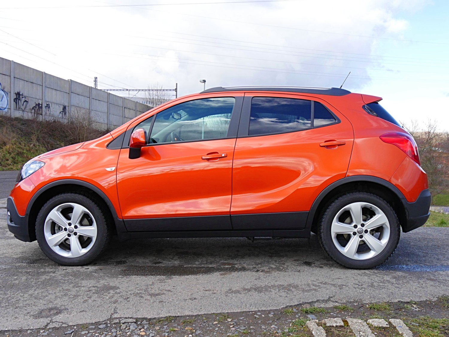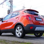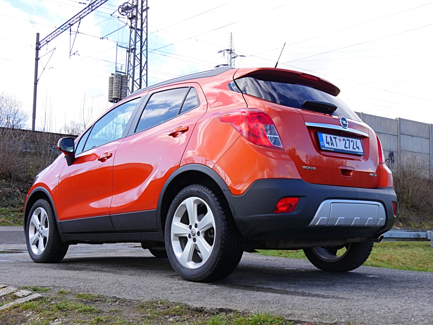 Karoserie, která vypadá vyšší než širší, je navíc zbarvena do hezké oranžové metalízy. Osmnáctipalcová kola se ve velkých, černým plastem lemovaných podbězích takřka ztrácí, nicméně co se vlastní jízdy týče, o něco lepší variantou by byly ještě o palec menší sedmnáctky, které by umožnily lepší filtrování drobných nerovností zejména po městě. Nedá se říci, že by byla Mokka tvrdým autem, ale na rozbité silnici dá o nerovnostech vědět a to hlavně akusticky.